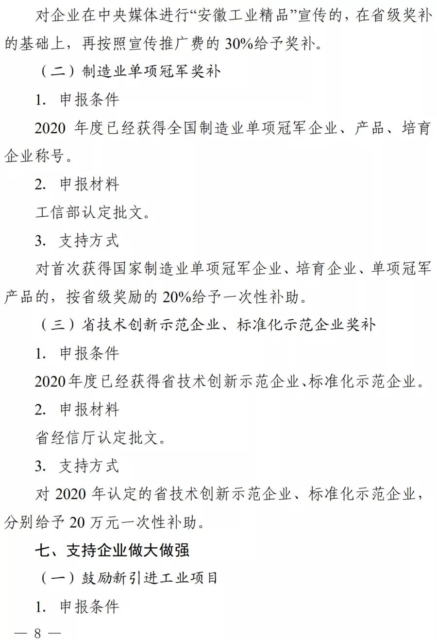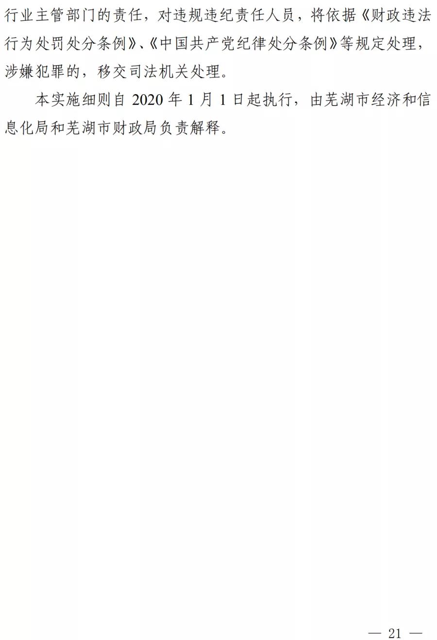 蕪湖市2020年促進(jìn)新型工業(yè)化若干政策規(guī)定實(shí)施細(xì)則印發(fā) 作者: 安徽新天源建設(shè)咨詢有限公司 最后修訂: 2021-02-05 08:59:23 摘要: 附件