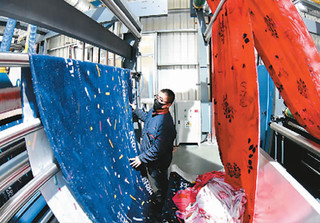 江蘇省連云港市金融機構(gòu)日前對認定的142家疫情防控重點保障企業(yè)加大對接服務(wù)力度,落實優(yōu)惠信貸資金23.29億元,建立貸款發(fā)放綠色通道,優(yōu)先保障企業(yè)融資需求,助力企業(yè)加快復(fù)工生產(chǎn)。圖為在連云港海州經(jīng)濟開發(fā)區(qū),工人正在加工生產(chǎn)一批出口毛毯。